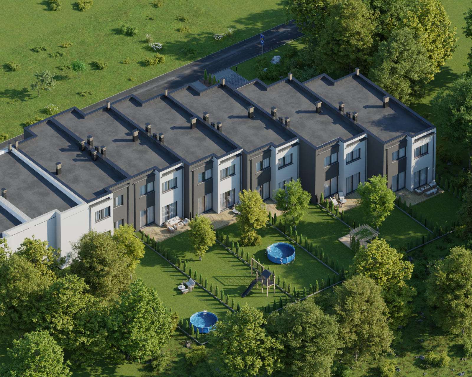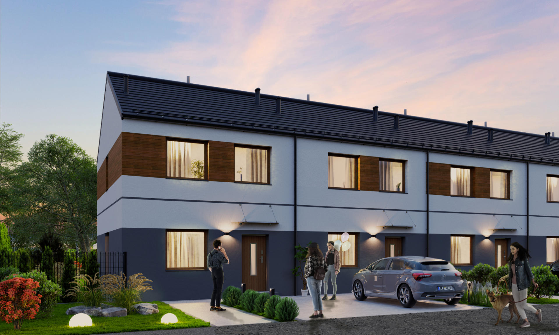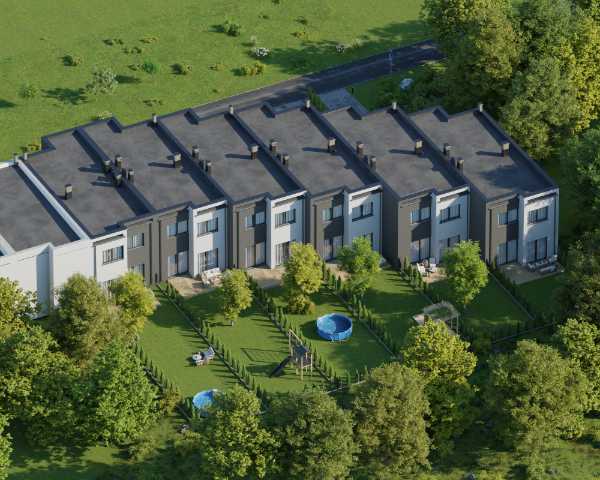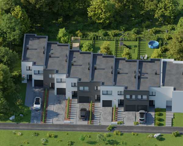 Domy wykonano w nowoczesnym stylu ze sprawdzonych materiałów budowlanych. Charakteryzują się bardzo dobrymi parametrami termoizolacji. Są oddawane w podwyższonym standardzie deweloperskim, który obejmuje: ogrzewanie podłogowe we wszystkich pomieszczeniach, okna trzyszybowe i skrzynki na rolety na parterze. Dzięki dużym oknom, wnętrza są pełne naturalnego światła. Do każdego domu przynależy indywidualny ogródek, w którym możesz odpocząć na świeżym powietrzu.