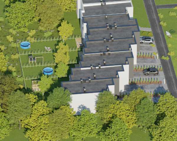Nie będzie żadnych problemów z parkowaniem samochodu – masz do dyspozycji dwa miejsca postojowe przed budynkiem. Wszyscy mieszkańcy mogą korzystać z pełnej infrastruktury osiedla oraz prywatnego terenu rekreacyjnego o powierzchni ponad 4000 m², położonego wzdłuż rzeki Głuszynki. Ten zadrzewiony obszar będzie zagospodarowany – znajdzie się tam plac zabaw, miejsce na ognisko i zewnętrzna siłownia.
