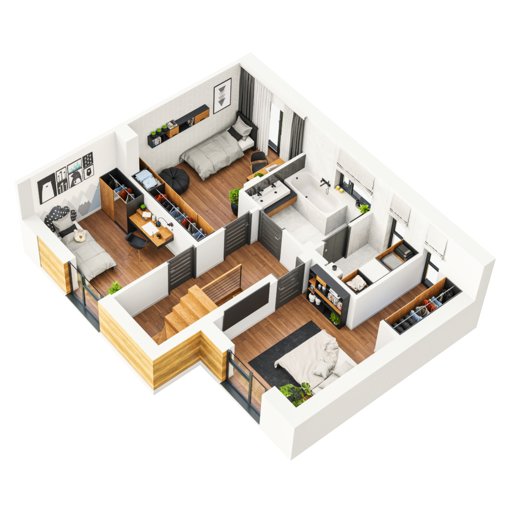 Bez trudu znajdziesz przestrzeń do aranżacji dziecięcego pokoju, gabinetu do pracy czy komfortowej sypialni. Spotkania z bliskimi zorganizujesz w przestronnym salonie z wyjściem do ogródka. Nigdy nie zabraknie Ci również miejsca do przechowywania domowego wyposażenia.